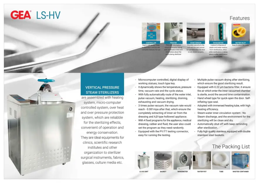A pressure steam sterilization device with Pulse Vacuum technology that ensures more effective and even sterilization. With a capacity of 50 liters, this device is ideal for hospitals, laboratories, and clinics that require fast and efficient sterilization. Equipped with a heating system, micro-computer control system, and protection systems against overheating and overpressure, making it reliable in sterilization effects, easy to operate, and energy-efficient.