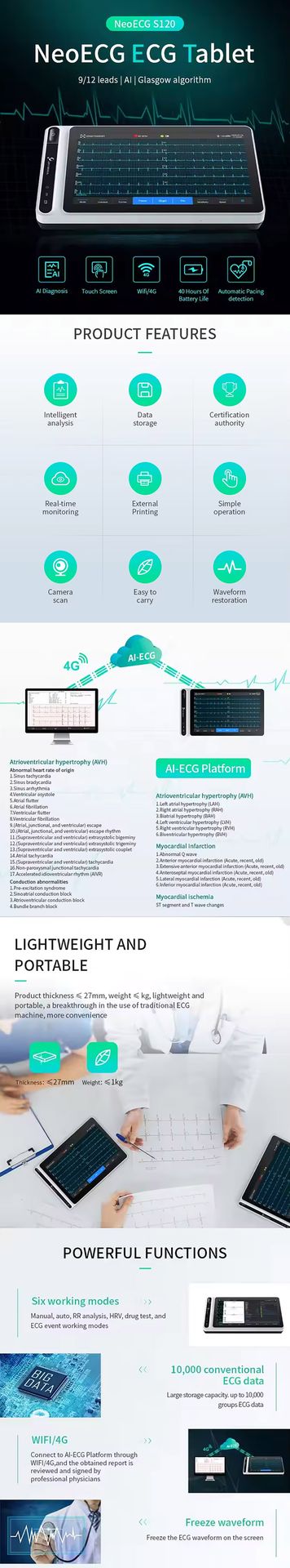 ECG Tablet Nubion NeoECG S120 AI Smart Electrocardiogram Touch Screen