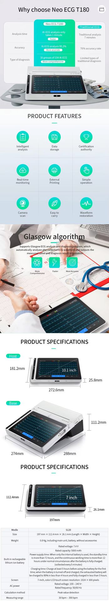 ECG Tablet Nubion NeoECG T180 AI Smart Electrocardiogram + Printer