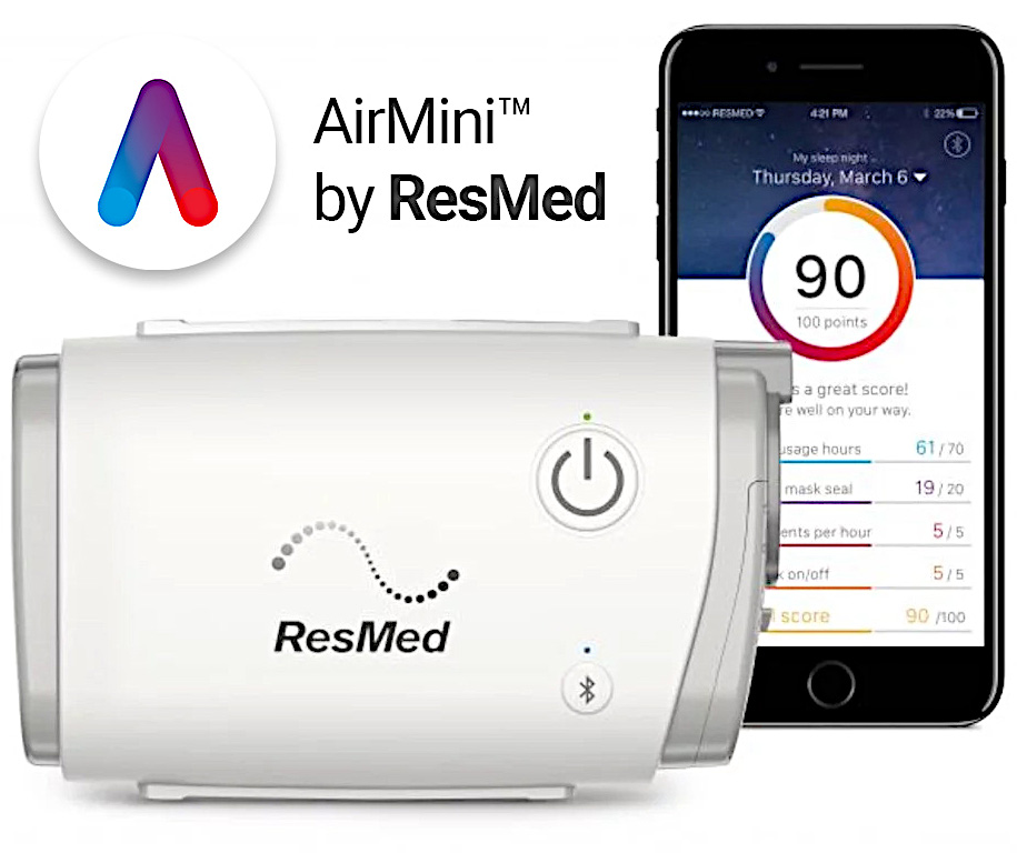 ResMed AirMini CPAP Travel dengan desain ukuran terkecil di dunia, ringan, portable dan pas di telapak tangan Anda.