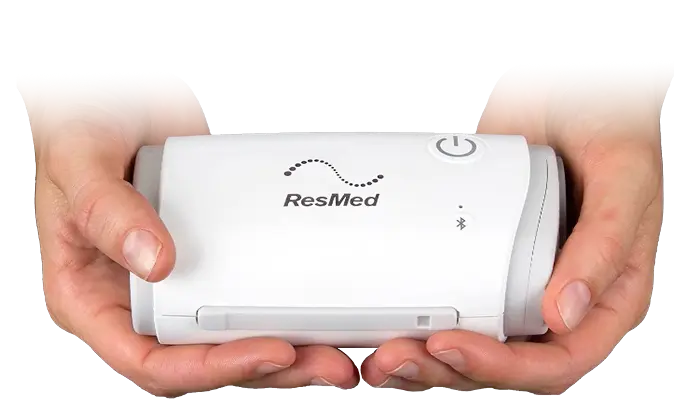 ResMed AirMini CPAP Travel dengan desain ukuran terkecil di dunia, ringan, portable dan pas di telapak tangan Anda.